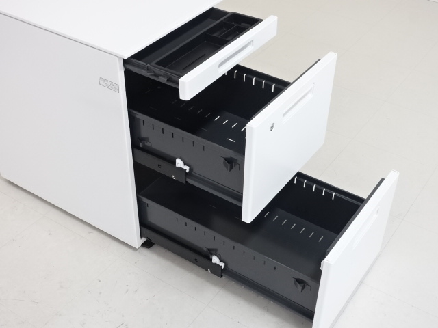 商品番号:D-31553 品名:コクヨ iS [ワゴン:GT] 平デスク(引き出し無しタイプ)3段ワゴンセット