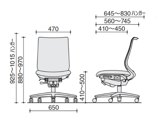 肘なしのオフィスチェア(OAチェアー・事務椅子)は、デスク下の幅が狭い環境に適しています。開放感があり頻繁に席を立つ事が多い仕事では効率的です。
