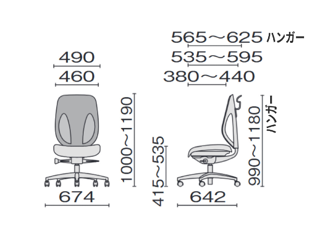肘なしのオフィスチェア(OAチェアー・事務椅子)は、デスク下の幅が狭い環境に適しています。開放感があり頻繁に席を立つ事が多い仕事では効率的です。
