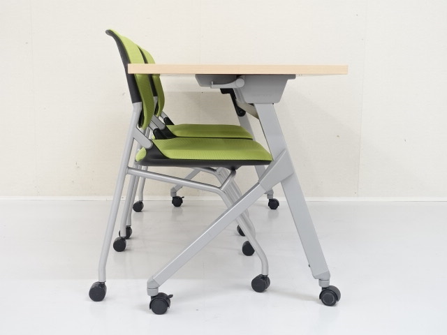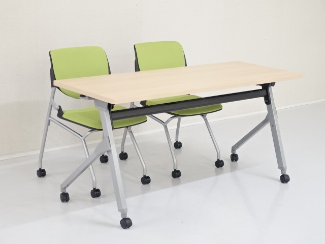オカムラ会議3点セット(フラプター [チェア:ルナ]シリーズ)T-37013のページです。フォールディングテーブル(折りたたみテーブル・フラップテーブル・スタックテーブル・長テーブル・長机)をお探しなら品揃え豊富な「中古オフィス家具専門店楽市」へ、楽市の中古オフィス家具は1年保証付きで安心です。