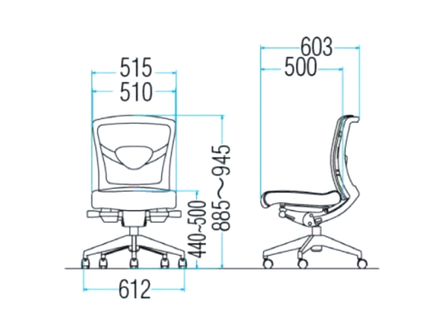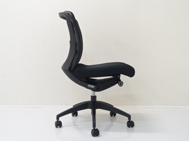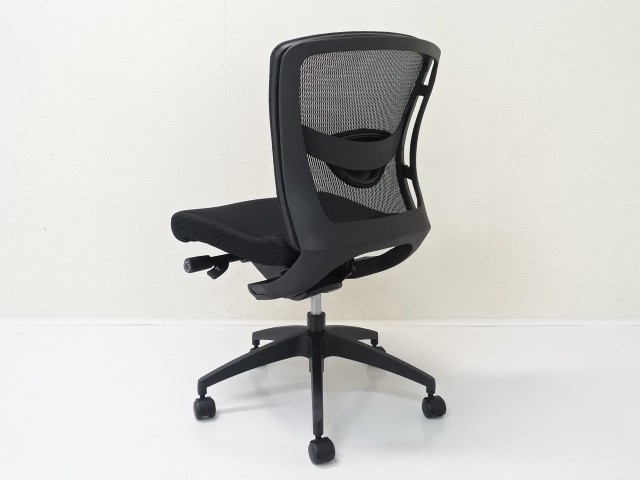 肘なしのオフィスチェア(OAチェアー・事務椅子)は、デスク下の幅が狭い環境に適しています。開放感があり頻繁に席を立つ事が多い仕事では効率的です。