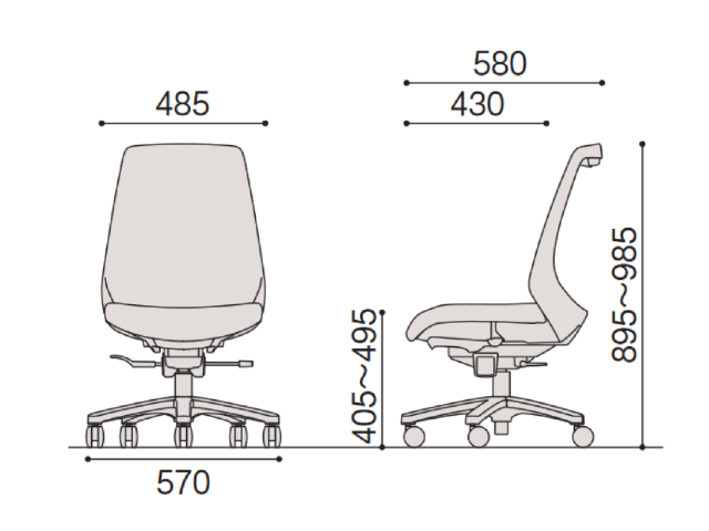 肘なしのオフィスチェア(OAチェアー・事務椅子)は、デスク下の幅が狭い環境に適しています。開放感があり頻繁に席を立つ事が多い仕事では効率的です。