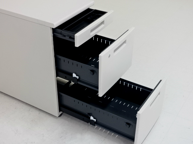 コクヨ片袖デスク2段サブデスクセット(BS+シリーズ)D-37466のページです。両袖デスク・事務机・パソコンデスクをお探しなら品揃え豊富な「中古オフィス家具専門店楽市」へ、楽市の中古オフィス家具は1年保証付きで安心です。