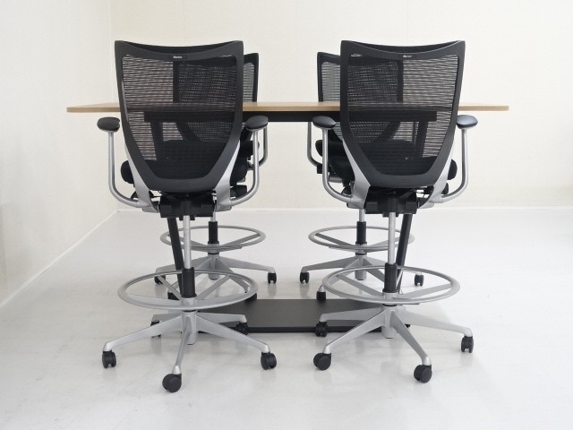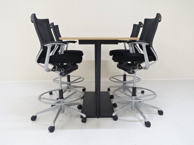 商品番号:T-37595 品名:コクヨ リージョン [チェア:バロン (Baron)] 台形ハイテーブル1点・オフィスチェア(ハイポジションタイプ)4点セット