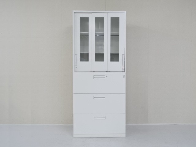 コクヨ3枚ガラス引違い3段ラテラルユニット書庫(H6cmベース付)(エディアシリーズ)K-37666のページです。ユニット書庫(キャビネット・スチール書庫・オフィス収納)をお探しなら品揃え豊富な「中古オフィス家具専門店楽市」へ、楽市の中古オフィス家具は1年保証付きで安心です。